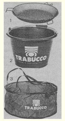 Рис. 1. Емкости для замеса прикормки: 1 — сито для размельчения комков прикормки; 2 — жесткое ведро; 3 — мягкое ведро. Удобно когда у ведра есть плотно закрывающаяся крышка. Она необходима для защиты прикормки от возможного дождя или брызг от волны. В ведре с крышкой, кстати, можно привезти домой улов в подобающем виде. Влага из рыбы не просочится в рюкзак, рыба не помнется. Часто на любительскую рыбалку кроме 6-литрового ведра я беру небольшой (4-5-литровый) тазик прямоугольной формы. В такой тазик удобно выкладывать шары прикормки перед забросом (закормом). Кроме того, в таком тазике я делаю экспериментальную прикормку. Вообще, жесткие емкости под прикормку удобны еще и тем, что в них можно перевозить различные хрупкие вещи, такие, как оснастки (если нет специальной коробки), бутылочки с «ароматикой», фотоаппаратуру и пр. Надо отметить, что мягкие ведра в последнее время приобретают популярность даже у спортсменов, которым и носить-то на себе ничего не приходится — все снасти помещаются в автомобиле, а многие считают, что в мягком ведре прикормку размешивать легче. И хотя мое мнение противоположное, приобретите (или сшейте) себе такое ведро и попробуйте, может, для вас это будет удобно. Ведро изготавливается из любой плотной ткани, которая не слишком сильно пропускает воду (прорезиненная ткань, брезент). Форма ведра не имеет значения — квадрат, прямоугольник или круг — главное, чтобы борта были не очень высокими (20–30 сантиметров). У ведра необходимо сделать ручки, как у обычной сумки. Прообразом мягкого ведра является обычный мешок из плотного полиэтилена. Я и сейчас пользуюсь таким мешком (емкостью около 20 литров) для тщательного перемешивания компонентов. В мешок высыпаются все составные части прикормки, мешок сжимается в горловине; перемешать в нем приманку можно довольно тщательно, несколько раз переворачивая и перетряхивая закрытый мешок. Далее из мешка прикорм пересыпают в ведро, где в него добавляют воду. Также вам не помешает иметь металлическое сию для насыщения прикормки кислородом и для размельчения комков уже смоченной прикормки. Сито устанавливают на ведро, высыпают прикорм небольшими порциями и протирают. Размер ячеи сита примерно 5–7 мм, что позволяем разбить прикормку на мелкие фракции. Бутылка для водыЖелательно использовать пластиковую бутылку с пробкой, емкостью более 1 литра. Жидкие ароматические добавки смешивают с водой именно в этой бутылке, и на этой воде замешивают прикормку. Если жидких ароматизаторов вы не используете, то удобнее пользоваться большой кружкой — ею удобнее зачерпывать воду. Иногда, даже во время соревнований, мне приходилось сталкиваться с ситуацией, когда до воды рукой просто не достать (например, на высокой набережной). Если вы собираетесь ловить в таком месте, не забудьте о веревке и грузе, в такой ситуации становится более удобным брать с собой небольшое ведерко. БрызгалкаНеобходима для дополнительного смачивания прикорма в процессе ловли, особенно в разгар лета, когда прямые солнечные лучи попадают на прикорм и влага из него быстро уходит. Вместе с влагой улетучивается и «ароматика». Поэтому полезно иметь под рукой либо специальную бутылочку — «брызгалку», либо еще одну пробку от той же бутылки, что описана выше, но с множеством мелких отверстий. В бутылке разводится «ароматика»