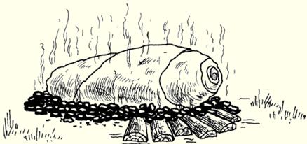 Рис. 2. Костер «звезда» Костер «колодец»Данный тип костра позволяет быстро получить большое количество углей, что делает его идеальным для определенных задач. Например, на нем опаливают свинину (или мясо кабана) для дальнейшей обработки. Кроме того, в таком костре можно запекать рыбу, предварительно завернув ее в фольгу и закопав в центре (см. рис. 3).