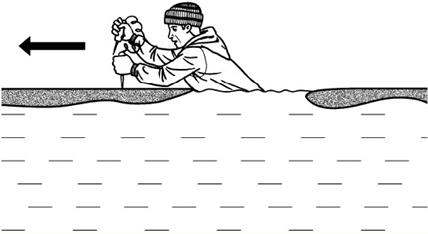 Рис. 1. Спасалки Специалисты по рыбной ловле из западных стран предлагают использовать так называемые плавающие комбинезоны. Их ключевая особенность – способность предотвращать переохлаждение рыболова при падении в воду, даже когда температура воздуха составляет -15–20 °C. Рис. 2. Так можно выбраться из полыньи Возвращаясь к текущей ситуации, приходится констатировать: я не наблюдаю, чтобы люди, выходящие на первый лед, были достаточно подготовлены к возможным опасностям. Более того, в российских рыболовных изданиях часто можно встретить утверждения о надежности льда толщиной всего 5 см. Это, на мой взгляд, крайне рискованно. Уверен, мои друзья, пережившие ледяные купания и чудом выжившие, поддержали бы мою точку зрения. К сожалению, многие забывают о коварстве первого льда, особенно в период оттепелей. Сегодня лед может казаться прочным, а завтра его состояние может резко ухудшиться, делая передвижение по нему смертельно опасным. Я часто вспоминаю один эпизод, когда я, словно загипнотизированный, подверг себя смертельной опасности. Вот как это было. Мои товарищи уехали в Скнятино накануне. Мне же предстояло присоединиться к ним на следующий день, в условленном месте – в рыбацкой землянке у реки Печухни. На рассвете, ориентируясь по вешкам, я перешел реку Волнушку и двинулся к островам, что в устье Печухни. До сих пор не понимаю, как я оказался на русле Волги. Подо мной был гладкий, черный лед, и вдруг он начал трескаться во все стороны. Пришлось быстро отступать, и, наверное, это меня спасло. Буквально через полчаса, идя к берегу по лосиным следам, я провалился в воду с головой. К счастью, рюкзак я нес на одном плече. Выбравшись на поверхность, я вытащил его на лед и с трудом выбрался сам. Осторожно добравшись до берега, я направился на базу. Повезло, что температура была плюс 4 градуса. Я шел быстро и через час уже был на рыболовной базе. Помните, что весенний лед особенно опасен. Он может рухнуть под тяжестью человека без предупреждения. Я рассказываю это только для того, чтобы вы не торопились открывать зимний сезон и не выходили на лед, когда он начинает таять под весенним солнцем. Пожалуйста, берегите свою жизнь – это самое ценное, что у вас есть. © (В.А. Казанцев) | |
