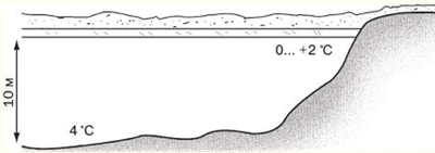 Ловля в полводыВо время зимней рыбалки часто можно услышать, что рыба сегодня клюёт только в середине водного слоя. Что же это значит? В период ледостава (от первого до последнего льда) поведение многих рыб становится менее предсказуемым. Если ночной хищник — налим — охотится преимущественно у дна, то такие рыбы, как щука и судак, зачастую поднимаются выше за добычей — в средние или даже в верхние слои воды. Особенно это характерно для водохранилищ средней полосы России. Причём подобное поведение наблюдается не только у хищников. Например, стаи лещей тоже часто перемещаются на глубину «в полводы», и в таких случаях даже самая привлекательная прикормка, помещённая на дно, не приносит результата. Как-то перед Новым годом мы с приятелем отправились в Щербинку на Рузское водохранилище. Оставив машину во дворе бывшего пионерского лагеря, оделись потеплее, прихватили ледобуры и снасти и спустились с крутого берега на лед. Алексей пошел на другую сторону водохранилища ловить окуня в коряжнике, а я пробурил и подкормил три лунки на леща. Прошел примерно час – хоть бы одна поклевка. Поплавки на моих удочках стояли как вкопанные. При опускании снасти в центральную лунку я столкнулся с неожиданным сопротивлением лески. После короткой подсечки на льду оказался подлещик, что натолкнуло меня на мысль о возможном скоплении рыбы в средних слоях воды. Я переключился с поплавочных удочек на снасть с кивком и мормышкой. Эксперимент подтвердил мою гипотезу: подлещик в тот день брал исключительно на "игру" и только в полводы. Этот случай стал стимулом для моего дальнейшего изучения и практики ловли в средних слоях воды. Что же на самом деле подразумевается под выражением «в полводы»? На мой взгляд, это довольно условное понятие. Часто на льду, когда ловят окуня, можно услышать от рыбаков, что полосатый хищник клюёт именно «в полводы». Однако на самом деле стаи окуня занимаются во всех слоях водоёма — от нижней поверхности льда до самого дна. Следовательно, чёткой границы «в полводы» просто не существует. Некоторые считают, что при глубине течения от 5 до 10 метров область, начинающаяся примерно в 1,5–2 метрах от нижнего слоя льда и простирающаяся до 2 метров от дна, можно называть «в полводы». Но не слишком ли размытым получается это определение? Возможно, правильнее говорить, что «рыба берёт в толще воды». В любом случае для опытного рыболова гораздо важнее понять другое — почему как хищные, так и мирные рыбы покидают придонные слои и поднимаются на уровень ближе к нижней части льда. Главная проблема - недостаток кислорода. Летом кислород поступает в воду благодаря ветру, волнам и течениям. Зимой же, подо льдом, ситуация меняется. В закрытых водоемах растения перестают вырабатывать кислород, отмирают, и его количество падает. Хотя нижние слои воды теплее (около 4°C) и, на первый взгляд, должны быть благоприятны для рыб, кислорода там значительно меньше, чем у поверхности. Следует также принимать во внимание, что плавательный пузырь рыб обладает высокой чувствительностью к колебаниям атмосферного давления. В зимние месяцы рыбы в целом демонстрируют наиболее выраженную зависимость от погодных условий. Что касается хищных видов, таких как щука, судак, берш и окунь, то их перемещения по вертикали водоема зачастую инициируются уходом мелкой рыбы в средни