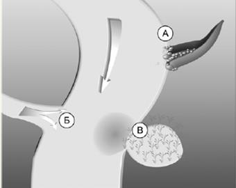 Рис. 5. Места стоянки рыб и скопления корма: а – береговые овраги; б– устье впадающих речек; в – небольшой мелкий залив Устья впадающих речек (рис. 5, б) также могут быть местом скопления корма и стоянки рыб. Определенный интерес могут представлять и небольшие мелкие заливы, поросшие травой, особенно если они переходят в глубокое русло реки. Ночью здесь обычно охотятся сомы, а днем – окунь, щука и голавль (рис. 5, в). Как видно из предложенных схем участки вероятной локализации рыбы в проточных водоемах всегда имеют выраженные на общем фоне отличительные признаки. Аналогичный закон справедлив и для водоемов со стоячей водой. Поэтому без внимания рыболова не должны оставаться ни резкие спады с отмели на глубину, глубокие подводные борозды, имеющие как естественное, так и искусственное происхождение. А такие гидротехнические сооружения, как плотины, дамбы, укрепленные берега, вообще считаются наилучшими местами для ловли всех хищников. (С.А. Сидоров) | |