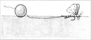 Рис. 1. Оснастка с поплавком-шаром для ужения на насекомых Но порой случается, что рыболов обнаруживает жирующих голавлей случайно, не имея с собой поплавка-шара, а без него насекомое до нужной точки не докинуть. Тогда можно выбрать из имеющихся самый незаметный и неярко окрашенный поплавок, поднять грузик вплотную к нему и отпустить поводок на длину 50–60 см. Иногда помогает, но зачастую голавль настороженно относится к непонятному предмету, плывущему рядом со знакомой пищей, — и отказывается от поклевки. В таком случае остается последний шанс: заменить поплавок куском ветки или обломком сухого стебля тростника, — в общем, одним из тех предметов, что часто плывут по течению, — и попытаться успокоить подозрительного голавля. Крючки применяются достаточно крупные (№ 7 — № 9 по отечественной нумерации), при ловле на бабочек (капустниц и т. д.) их необходимо насаживать 2–3 штуки, чтобы насадка оставалась на плаву, мелких насекомых (бабочек ручейника, например) насаживают до десятка. У насекомых с жестким хитиновым панцирем (кузнечиков, жуков) жало крючка выводят наружу. Жесткие надкрылья иногда обламывают, расправляя мягкие прозрачные крылья. Про леску можно сказать одно: чем она тоньше, тем лучше. Прогресс в деле производства рыболовных снастей, имевший дело в последние два десятилетия, позволяет выводить вполне приличных голавлей на поводке толщиной 0,1–0,12 мм. Но если вдруг удалось заметить крупных рыбин, в 2–3 кг и более (увидеть голавля, держащегося в верхних слоях воды, с высокого места нетрудно), то стоит увеличить диаметр лески. Необходимые условия ловли — тишина и маскировка. Недопустима яркая одежда, к месту ловли желательно подходить под прикрытием кустов и деревьев. Хотя надо отметить, что голавля пугают лишь непривычные звуки и движения. Например, стайки голавлей зачастую кормятся неподалеку от мест купания, ничуть не смущаясь визгом, плеском и прочим бултыханием. Мне доводилось ловить на кузнечика голавлей в яме, расположенной за пешеходным мостом: люди ходили по мосту постоянно, рыбы их, без сомнения, видели, да и тени от пешеходов падали туда, где держались голавли, — однако клеву это не помешало. Правда, экземпляры попадались далеко не рекордные. Итак, осторожно подобравшись к стоянке голавлей, надо аккуратно, без лишнего плеска, закинуть насадку несколько выше по течению, — так, чтобы струя спустя какое-то время вынесла насекомое к месту жировки рыбы. Чтобы поймать крупных голавлей, иногда приходится отпускать насадку далеко, метров на 25–30. Ни кузнечика, ни поплавок-шар на таком расстоянии уже не разглядеть, и ловить приходится вслепую, держа леску внатяг и определяя поклевку по отдающемуся в удилище толчку. Но достигнуть веса в несколько килограммов у голавля в наше время немного, особенно в местах густонаселенных, — и гораздо чаще приходится иметь дело с некрупными голавликами, менее осторожными. Клюют они гораздо ближе к рыболову и поклевка определяется визуально, по бурунчику и исчезновению насекомого. Подсекать надо немедленно, уколовшись о крючок, голавль тут же выплевывает насадку. Повсеместное измельчание голавлей порой приводит к неприятным казусам при поклевке голавля действительно крупного. Иногда очень удобно ловить небольших голавлей, спуская леску вниз с моста или плотины: рыбы весом 300–400 грамм с