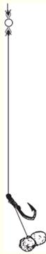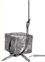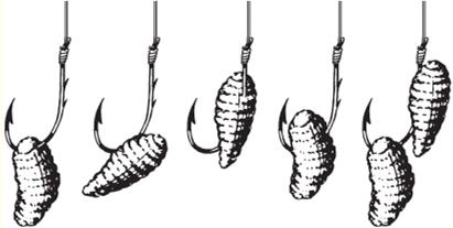 Рис. 3. Насаживание кусочка жмыха Мягкие приманки. Их насаживают обычно с помощью специальной иглы, если речь идет о волосяной оснастке (рис. 4) или так, как это показано на рисунке 5.