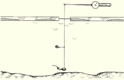 Ленок – крупная рыба. Тело темно-бурое с золотистым отливом. Ниже и выше боковой линии, а также на спинном и хвостовом плавниках мелкие округлые темные пятна. Пресноводный хищник длиной до 68 см и массой до 7 кг. Нерестится в мае – июне. Плодовитость маленькая, 3–7 тыс. икринок. Температура нереста 5–9°С. Некоторые взрослые рыбы после нереста погибают. Питается молодью рыб, мышами, лягушками, рачками, личинками насекомых и самими насекомыми. Обитает в реках Сибири и Дальнего Востока. Является объектом спортивного рыболовства. Жор обычно начинается после нереста, когда ленок хватает фактически любую насадку в течение двух недель. В это время его нужно искать по притокам средних и крупных таежных рек. Летом он часто стоит на перекатах, поджидая попадающих в воду насекомых, нередко облюбовывает устья рек, места вблизи водоворотов. Здесь ленка хорошо ловить нахлыстом поверху на сухую (типа Red butt, Green butt) или на плавно тонущую мушку. Основной же лов начинается со второй половины августа и длится до октября, когда рыба скатывается в более глубокие русла и ямы. Ловят ленка на утренней и вечерней заре, а в пасмурную погоду и днем, используя спиннинг, нахлыст или поплавочную удочку с живцом или короедом. Для спиннинга можно применять различные мягкие джиг-приманки, банджо-гольян, тонущие воблеры, колеблющиеся и вращающиеся блесны крупного и среднего размера. Поскольку ловят ленка всегда (даже если он стоит в ямах) на течении, «вращалки» лучше брать с металлическим сердечником, например, «Блю-фокс» и «Абу-гарсия». Вращающиеся и колеблющиеся блесны могут быть белого, желтого цветов (или с крапчатой, полосатой, пятнистой раскраской) в зависимости от состояния воды, погоды, особенностей кормовой базы реки. Следует помнить, что в пасмурную погоду лучше подходят более яркие приманки, а в солнечную – более тусклые. Ловят ленка и поверху на блесну, имитирующую мышь. Проводка должна быть достаточно медленной, с естественными сносами на быстрой струе, точно имитирующей движения плывущей мыши. Зимой, пока лед не стал слишком толстым (на сибирских реках величина ледового покрытия доходит до 2 м и более), ленка ищут на ямах с относительно спокойным течением и ловят на так называемый «байкальский настрой», который представляет собой удочку без кивка с мормышкой на конце лески и расположенным выше нее крючком на коротком поводке (рис.). Мормышка нужна достаточно тяжелая, изготовленная в виде капельки, продолговатого насекомого или уплощенной вытянутой формы. Ее обычно наживляют красным червем, а располагающийся на расстоянии 10–15 см крючок – личинкой жука-короеда. Техника игры достаточно проста: мормышку опускают на дно и время от времени слегка шевелят или отрывают от дна. Поклевка обычно следует, когда мормышка успокоится. Ленок берет насадку резко, поэтому необходимо внимательно следить за снастями, чтобы они не оказались в лунке. Рис. «Байкальский настрой» При ловле отвесным блеснением для ленка больше подойдут блесны вытянутой формы, близкие к окуневым, но крупнее и с более толстой напайкой свинца, поскольку игру ведут на течении. И последнее. Если в данном месте реки вы обнаружили присутствие тайменя, на поимку ленка можно не рассчитывать, поскольку последний является объектом охоты царь-рыбы. (А.Г. Горяйнов) | |