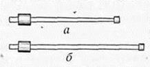 Рис 2. Форма пластинки кивка: а — для ловли окуня, плотвы, ерша; б — для ловли леща Иногда происходит следующее: лещ на мормышку ловится значительно хуже, чем на крючок зимней поплавочной удочки, или на мормышку идет мелочь, а на крючок — крупная рыба. В этом случае рыболовы-любители обычно сверлят рядом две лунки, в одну ставят поплавочную удочку, а в другой ловят на мормышку, и в зависимости от того, на какую снасть лучше клюет, переходят на нее. Спортсмены же не имеют такой возможности, поэтому добиваются оживления клева, варьируя цвет, форму и размер мормышки. Как говорилось ранее, на тренировках спортсмены отбирают наиболее уловистые (на которые больше поклевок) и зацепистые (с которых меньше сходов) лещевые мормышки. Для них должна быть отдельная коробочка или место на внутренней стороне поролона в общей коробке. Отобранные мормышки применяют только на соревнованиях, особенно в тот период (обычно ближе к весне), когда лещ, игнорируя прикормку, перемещается по зоне, и спортсмену приходится следовать за косяком. В подобной ситуации удачно подобранная мормышка в сочетании с умелой игрой обеспечивает успех. Какими должны быть форма, размер и цвет мормышки именно для леща, определенно сказать я не решаюсь: на каждом водоеме, а бывает, на одном и том же, но в разное время сезона, приходится каждый раз подбирать мормышку. Обычно на соревнованиях спортсмены в начале ловли пробуют приманки двух цветов — яркую посеребренную и тусклую, цвета свинца. Размер их средний: для малых глубин — свинцовые или комбинированные— биметаллические (снизу медная фольга сверху серебряная или наоборот), для больших — из тяжелых сплавов. Планирующие мормышки из-за небольшого веса и особой постановки крючка для ужения леща непригодны: поклевок на них много, а зацепистость (именно леща) плохая.