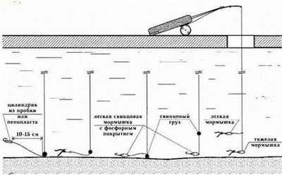 В начале зимы лещ чаще всего располагается на глубоких свалах, рядом с руслами и глубокими оврагами. Если глубина акватории, на которой обитает лещ, не превышает 10–12 м, то он длительное время может перемещаться в местах с максимальной глубиной, например, прямо по руслу. Если концентрация леща большая, то периодически косяки рыбы выходят на предрусловые «столы» и так называемые «поливы». Очень часто лещ длительное время кормится у входа в заливы, в ночное время часто выходя на площадки с глубиной всего 4–5 м, но с хорошей кормовой базой. И все же глубокие свалы вперемешку с рельефными участками дна – основные пристанища крупных лещевых стай. Не найдя глубинную бровку, рыболов даже хорошо прикормив несколько лунок на большой площади, обречен ловить мелкого подлещика весом 100–150 г. И в то же время на свале, буквально расположенном в десяти метрах, улов при той же прикормке может достигать внушительных размеров. Поэтому если у вас в запасе есть несколько дней, один из них лучше потратить на поиск лещевых мест и троп. Перемещение стай леща происходит по одному, только ему известному маршруту, подчас минуя перспективные, с точки зрения рыболова, рельефные участки в которых его без обильной прикормки дождаться практически невозможно. В других же местах, чтобы надолго задержать стаю, достаточно раз в два часа в расположенные рядом лунки опускать по кормушке прикормочной смеси. На незнакомом цивилизованном водоеме в середине зимы подлещика можно обнаружить, только проделав огромный подготовительный объем работы. Но часто случаются ситуации, при которых буравить лед и прикармливать рыбу бесполезно, так как подлещик может брать только в определенные отрезки времени. Допустим, между 9:30 и 10:00 на глубине и между 13:30 и 14:30 на верхних границах бровок. По такой схеме лещ иногда берет в конце января на водохранилищах Подмосковья при неблагоприятных погодных условиях (перепады атмосферного давления, северо-восточный ветер, метель). В бесперспективные места ловли в середине зимы заманить подлещика даже с помощью отменной прикормки практически невозможно. Ни в коем случае в середине зимы нельзя прикармливать только один, пусть даже очень привлекательный участок ловли. И совсем бесполезно прикармливать лунки, расположенные на одной глубине в непосредственной близости друг от друга. Напоминаю, речь идет о ловле крупных экземпляров, а не мелкого подлещика. На практике рыболов, прикормив 2–3 перспективных участка ловли и обозначив присыпанные лунки флажками, возвращается к первым прикормленным лункам, а при отсутствии клева переходит к следующим. И только попав на хороший клев, начинает ловить рыбу. Зимняя прикормка на лещаВ течение полутора-двух недель после становления льда состав прикормки выглядит так: 1. Мелкий мотыль – 1,5 коробка; Тем, у кого нет времени и возможности достать нужные компоненты прикормки, следует знать, что по первому льду положительный эффект оказывают практически все каши, сваренные не так круто, как для летней рыбалки и без добавки ароматизаторов или с их минимальным количеством. Можно прикармливать леща мякишем белого хлеба (батон нарезной). Мякиш отделяется от корки, смачивается водой, разминается и закладывается в кормушку. По первому льду такая, казалось бы, простая прикормка действует безотказно. По первому льду 