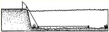 Казалось бы, ловля крючковыми снастями налима — хищника более чем апатичного и флегматичного — ничего заманчивого из себя не представляет. Клюет он вяло, порой совсем незаметно, сопротивления при вытаскивании почти не оказывает, да еще и ловится лучше всего в самую мерзкую погоду, холодными и дождливыми осенними ночами. Однако очень многие любители нетерпеливо поджидают холодов, перебирая налимьи донки, переметы и подпуски, и готовясь отправиться на новую встречу с усатым отшельником. И не только в деликатесном мясе налима тут дело, хотя и в ухе, и в пирогах мало какая из рыб сможет составить ему конкуренцию. В самой ловле налима есть нечто завораживающее: тихая ночь, костер, посылающий искры к звездному небу, неспешные разговоры с коллегами-рыбаками за стаканом… хм… крепкого чая… Люблю налимью рыбалку. Наиболее оптимальной снастью для осенней ночной ловли налимов мне представляются подпуски, и вот почему: перемет, конечно, может оказаться более уловистым, хотя бы в силу своих больших размеров. Но, как сказано выше, налим — рыба очень чувствительная к качеству воды, и в достаточно населенных районах водится в основном в узких верховьях рек. На извилистых закоряженных лесных речушках длинный перемет толком не растянуть, да и лодку, с которой его обычно ставят, применять неудобно. Донки с 2–3 крючками неудобны по другой причине. Налим, двигаясь к местам кормежки, передвигается по одним и тем же подводным «тропам», достаточно узким, — например, придерживаясь борозд на дне. И имеет гораздо больше шансов разминуться с донкой, чем с подпуском. Конструкция налимьего подпуска несколько отличается от обычной. На конец лески диаметром 0,7–1 мм ставится грузило, вес которого зависит от силы течения, — необходимо, чтобы заброшенный перпендикулярно берегу подпуск вода не сносила. Некоторые рыболовы, пользующиеся большим количеством подпусков, концевые грузила с собой не возят, а используют подобранные на берегу камни-голыши, закрепляя их на леске 2–3 витками изоленты. Рис. 1. Налимий подпуск Поводки (10–12 шт., на очень узких речках — меньше) крепятся на основную леску достаточно часто, на расстоянии не более метра друг от друга, и делаются короткими — 30–40 см (давать слишком большую свободу налиму, заглотавшему насадку, чревато, — живо захлестнет поводок за какую-нибудь корягу). Крепятся поводки «петля в петлю», причем размер петли на поводке должен быть такой, чтобы в нее пролезала предполагаемая добыча. Длина рабочей части подпуска зависит от ширины водоема и обычно не превышает 8-10 м, но на мотовило зачастую наматывают втрое больший запас лески, на тот случай, если ловить придется на более широком разливе. Толщина лески, из которой приготовляются поводки, произвольная, — налим и грубых снастей не пугается, и, ввиду своей апатичности, тонкую леску не обрывает. Какие обрезки лески есть под рукой, те и идут в дело. Естественно, там, где встречаются крупные, в несколько килограммов, налимы, снасть должна отличаться надежностью. При ловле на узких речках с крутыми берегами используется дополнительное грузило весом около 30 гр. (так называемый «бегунок»), свободно скользящее по леске. После заброса подпуска «бегунок» спускают к рабочей части, до стопорного узла, завязанного в метре от ближнего к берегу крючка, — в результате все крючки снасти, а 