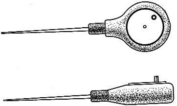 Рис. 2. Удочка со встроенной катушкой («балалайка») КивкиКивок для ловли должен быть конусообразным, в меру жестким, длиной не более 10 см. Наиболее удачные конструкции кивков изготавливаются из поликарбонатовой пластины, лавсана, копра лона или из металлической пластины с дополнительным ребром жесткости. Такой кивок меньше реагирует на боковой ветер. Форма кивка и его жесткость позволяет передать мормышке высокоскоростной режим игры, который в отдельные периоды является основным. МормышкиОкунь – одна из немногих рыб, которая в большей степени реагирует на игру мормышки независимо от ее формы. Больше всего его интересуют скачкообразные перемещения мормышки с минимальным отклонением от вертикальной оси. Мормышки плавно перемещающиеся или планирующие при игре – окуня не интересуют. Очевидно, его повседневный корм (рачки – бокоплавы, личинки водных насекомых) перемещается в вертикальной плоскости. Подобная игра диктует и форму мормышки. Мормышка может быть достаточно объемной, но при этом ее длина в горизонтальной плоскости не должна превышать 5–7 мм (рис. 3).