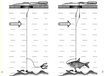 Рис. 3. Оснастка для ловли плотвы в стоячей воде Ловля плотвы с кивкомС удочкой, оснащенной кивком и мормышкой, наиболее эффективным бывает ужение по первому и последнему льду, когда вы ловите на относительно небольшой глубине (до 3–3,5 м) и плотва ведет себя довольно активно. Прикормка может срабатывать, а иногда и нет. Важно выбрать себе «прикладистый» удильник, чтобы удобно было подсекать и вываживать рыбу, а также сообщать мормышке нужные колебания. Для ручки можно использовать твердый пенопласт, пробку, для хлыстика (шестика) – непористый винипласт и поликарбонат. Хлыстик должен быть в меру упругим и не ломаться на морозе. Удильник, как и в поплавочном варианте, должен быть таким, чтобы его не опрокидывало и не сносило ветром, если вы его положили на лед возле лунки (иногда на стоячую мормышку рыба берет лучше). Длина определяется вкусом рыболова: одни любят удить короткими, другие – более длинными удильниками. Однако при ловле без насадки удильник принято делать короче.