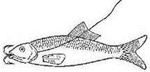 Рис. 4. «Мой» способ насаживания для жерлиц Не скажу, что это самый надежный, удобный и широко применимый способ насаживания. Нет. Даже не буду скрывать два недостатка, проявившиеся в ходе его эксплуатации. Во-первых, известно, что щука хватает живца сбоку, поперек. Но не всегда щучья атака случается под идеальным углом 90 градусов. Если хватка последовала под углом, наклоненным в сторону головы, крючок может вылететь у живца изо рта и повиснуть на поводке чуть в стороне. В таком случае щука при всем желании не может проглотить живца вместе с крючком. Случается такое редко (обычно живец видит приближающуюся щуку, пытается от нее удрать, и хватка следует под углом, наклоненным к хвосту). Но все же случается. Второй случай с неудачным исходом еще более редок. Иногда щука, разворачивая живца в пасти, чтобы отравить его в желудок (головой вперед по своему непременному правилу), чувствует крючок. Накалывается, и довольно чувствительно. Тут же выплевывает живца, но острие крючка уже зацепилось, и он остается в пасти. Испуганная щука бросается в сторону, или делает свечку, — и сама себя подсекает. Но подсекает неудачно, за край пасти одним поддевом крючка. И когда рыболов начинает вытаскивать добычу, петелька поводка может выскочить из раздвижного двойника. Иногда и сама щука умудряется освободиться таким способом, приводя в недоумение рыбака: жерлица размотана, поводок цел — и ни живца, ни крючка, ни щуки… Вопрос: отчего же я продолжаю пользоваться этим способом, на практике узнав его недостатки? Ответ: из-за его достоинств. Дело в том, что несколько моих жерлиц стоят на водоеме постоянно, с конца августа до ноября. Проверяю в теплое время их раз в день, когда похолодает — раз в два дня. Но иногда по каким-то причинам приходится пропустить несколько дней, а то и неделю. При таких условиях ловли живучесть становится самым главным качеством живцов. И описанный способ, не травмирующий живца, вполне ее обеспечивает. Был случай, когда карасик прожил на жерлице неделю, нисколько не утратив бойкости. И наверняка прожил бы еще, да щука не позволила… Есть и еще менее травмирующие способы насадки живцов (все-таки металл под жаберной крышкой едва ли способствует правильному дыханию рыбки). Например, т. н. «жерличная шлейка», предложенная известным рыболовом И. Михайловым еще в середине прошлого века (рис. 5). Но стоит лишь представить, как придется на водоеме одевать на каждого живца этакую хитрую упряжь… Нет, на такое способны только педантичные немцы. Но если кто-то заинтересуется и воплотит, общество защиты животных будет ему благодарно — живца, не приманившего щуку, можно отпустить целым и невредимым, моральная травма не в счет.