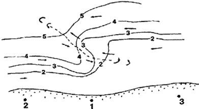 Ловля судака на преднерестовом ходе в рекахВ конце апреля — начале мая двигательная активность судака максимальна. Типичное место, где он в это время хорошо ловится, расположено на маршруте его хода, который так или иначе связан с местом предстоящего нереста. Обычно это участок реки, на котором умеренное прямое течение граничит с медленным обратным. По границе двух потоков и проходит узкая тропа судака. До и после этого места судак может идти различными путями, где ближе к берегу, где дальше (рис. 1).