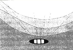 Рис. 1. Схема ловли с проводкой с мели на глубину. Длинным пунктиром показаны предпочтительные направления забросов Там, где имеется четко выраженная бровка, оптимальная траектория движения приманки образует с нею острый угол (рис. 1). Проводка строго поперек свала (с мели на глубину) дает высокий процент пустых поклевок. Судак бьет спереди и натыкается на грузило. Вы ощущаете отчетливую поклевку, подсекаете и вырываете приманку из судачьей пасти. Хотя иногда судака удается зацепить (обычно снаружи), чаще подсечка не достигает цели. Щука, например, атакуя свою жертву, всякий раз стремится зайти ей сбоку. Щучьи поклевки вдогонку или в лоб случаются, когда или приманка мелкая, или щука крупная и ей одинаково удобно схватить приманку и сбоку, и спереди, и сзади. Судак же всегда атакует прямолинейно: если приманка идет навстречу, он «кусает» ее спереди. Чтобы судак схватил ее сбоку — ведь именно в этом случае он скорее всего сядет на крючки — требуется вести приманку так, чтобы она вышла на судака с фланга. Зная рельеф дна и вероятную позицию стоящего в засаде судака, надо в соответствии с этим принципом вести приманку. При ловле с лодки в стоячей воде ступенчатой проводкой нет необходимости быть в постоянном напряжении: на короткой леске при отсутствии течения касание приманкой дна (провисание натянутой лески) ощущается достаточно четко. Только сильный ветер способен привнести в ловлю некоторое неудобство. Совсем по-другому обстоит дело, когда ловят на течении. Даже в штиль приходится очень внимательно следить за проводкой, чтобы не пропустить момента касания дна, особенно в том случае, когда в прибрежной зоне имеется так называемая «обратка», то есть течение, направленное против основного. Тогда леска изгибается в форме буквы «S», и связь с приманкой при недостаточно отработанной технике проводки почти теряется. Это оборачивается большим количеством «слепых» поклевок, а также частыми зацепами — не воспринимая касания дна, мы позволяем приманке волочиться по нему. Добавьте сюда боковой или встречно-боковой ветер, усугубляющий и без того не простые для ловли условия, — и рыбалка вместо удовольствия принесет вам сплошное разочарование. Все это — и обратное течение, и ветер — действительно осложняет ловлю, но при некотором навыке можно очень успешно ловить в таких условиях, чувствуя и проводку приманки, и поклевку. Если в тихой воде бывает достаточно следить за натяжением и провисанием лески и положение, которое во время проводки занимает удилище, особой роли не играет, то на течении для полноценного ощущения проводки требуется внимательно наблюдать и за леской, и за кончиком удилища, а также максимально использовать свое осязание. Основная техника проводки на течении, предполагающая использование флюоресцирующей лески, должна быть следующей. После заброса, как только приманка упадет в воду, надо несколькими оборотами катушки выбрать слабину и одновременно на мгновение окунуть вершинку удилища в воду. Если не выбрать слабину лески, с ней не удастся сразу установить контакт, а окунать кончик удилища нужно для того, чтобы намочить ближайший к тюльпану участок лески: вынутая из воды, леска несет на себе мельчайшие капельки и от этого становится еще более заметной — даже если это не флюо, а обычная бесцветная леска. Кончик удилищ