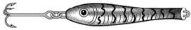 Рис. 3. Живец на специальном двойнике К ловле судака в «крепких» местах совсем другие требования. Во-первых, следует насаживать живца с расчетом на быструю подсечку с использованием специального двойника (рис. 3) или тройника, у которых один крючок короче. А во-вторых, необходимо ограничить запас свободно сходящей лески и делать подсечку после нескольких оборотов катушки. С учетом всего сказанного – это довольно непростая ловля, поэтому обычно я стараюсь не ставить жерлицы непосредственно в глухом коряжнике, а разбрасываю их по его периметру. Довольно распространенная ошибка малоопытных рыболовов – слишком мягкая подсечка. У меня было несколько случаев, когда подбагренный и вытащенный на лед судак разжимал челюсти и рыбешка вылетала изо рта вместе с крючком. Другая неприятность может возникнуть из-за преждевременной подсечки. При этом живец выдергивается из пасти хищника. Следует также помнить, что недостаточно острый крючок не в состоянии пробить костистые ткани судачьего рта. При ловле судака не рекомендуется ставить широкотелого живца вроде подлещика, сопы или густеры. А вот карась-пятачок вполне привлекателен для самого привередливого судака. В ловле судака со льда целесообразно выделять три периода: перволедье, глухозимье и последний лед. Каждый из них имеет свои особенности и требует особых подходов как к поиску судачьих стай, так и к технике и тактике ловли. Перволедье характерно тем, что судак придерживается, как правило, тех же мест, что и в летне-осенний период. Прежде всего это глубинные бровки с наличием коряг, каменистых гряд и других укрытий. Обычно такие места я заношу на самодельные карты еще по открытой воде. И мне не нужно тратить много времени на промер глубины и поиск перспективного места. В средней полосе России становление льда бывает в разное время. Если лед стал рано, больше шансов рассчитывать на активного судака. Но бывает и так, что слабые морозы чередуются с оттепелями вплоть до Нового года. Выходить на лед опасно. А затем устанавливается прочный лед, однако судак уже проявляет меньшую активность. С увеличением толщины льда поиск судаковых стоянок затрудняется. На крупных реках и обширных водохранилищах из года в год стоянки судака примерно одни и те же. И тем не менее поиск лучше вести группой в 3–4 человека. Глухозимье – есть глухозимье. Функции рыб угнетены, кислорода в воде становится все меньше. Однако вспышки судачьего клева все-таки бывают. Другое дело – последний лед. Вскрываются старые лунки, появляются открытые участки в прибрежной зоне. Под лед пошла талая вода, насыщенная кислородом. И, естественно, судаки все чаще начинают выходить на охоту за рыбьей мелочью. В это время клыкастые хищники обнаруживают себя как в придонных слоях воды на глубинах от 5 до 8 м, так и в толще воды, когда они преследуют многочисленные стаи уклейки. Вообще надо сказать, что судаки в этот период много передвигаются по акватории водоема и точно угадать их «тропы» – задача со многими неизвестными. Мне по последнему льду чаще приходилось встречать судаковые стаи на выходе рек, впадающих в водохранилища, рядом с руслом, где течение насыщает воду кислородом. Но и в это время поклевки на живца чаще случаются там, где есть подводные укрытия для такого нестандартного хищника, как судак. (В.А. Казанцев) | |