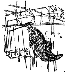 Волжские сазаныА. Клыков Сколько эти сазаны у нас удилищ поломали, волосяных лесок порвали, крючков поразогнули или утащили их в омут вместе с оборванными поводками, и подсчитать трудно! Все же однажды мне удалось вдоволь наглядеться на красавца-сазана. Дело было к осени. После легкой подсечки тихонько начал я тянуть. А кого — и сам не знаю. Чувствую — тяжеленько, но рыба не упирается и «на кругах не ходит». Продолжал подтягивать ее к лодке. И вот из воды показалась толстая башка, как у поросенка. Рот — трубкой книзу, а на верхней губе две пары коротких усов. Затем потянулась серая спина и на ней очень широкое перо, — так и чертит воду. А туловище длинное, все покрыто, как золотой броней, крупной чешуей. Тяну, и, удивительное дело, сазан повернул, как рулем, своим мощным хвостом и лег на бок. — Женя! — шепнул я своему другу, — подводи скорей сачок! Только он опустил сачок в воду, вдруг — плеск и леса забороздила против течения. Удилище — в дугу. Леса зазвенела, полетели брызги. Треск — и у меня в руках остался обломок удилища! *** У сазана очень широкий спинной плавник с зазубренным, как пила, передним лучом. Кстати сказать, такой же луч, но меньшего размера имеется и у анального плавника. Достаточно взглянуть на длинное мускулистое тело сазана с огромным и широким хвостом, чтобы понять, как эта рыба может сгибаться, подобно стальной ленте, развивать большую скорость и быстро повертываться в необходимом направлении. В дельте Волги нам не раз приходилось видеть, как крупные сазаны, примерно сантиметров до семидесяти длиной, легко выскакивали из воды на полметра и даже выше, а испугавшись брошенного камня, молниеносно удирали в русло с широкого плеса. Не раз приходилось на тоне удивляться, как сазаны весом в пять — десять килограммов ловко перепрыгивали через верхнюю подбору невода. Как-то летом в ста километрах от Астрахани, на Оранжерейной тоне, при нас подтягивали невод. Оба его крыла уже были на берегу, и мотня, полная рыбы, медленно подвигалась к нам. На этот раз почему-то не было на месте рыбака, который обычно приподнимает верхний край невода против середины мотни. Сквозь прозрачную воду было видно, как беспорядочно сновали язи, щуки. Иногда показывались головы крупной белуги или серый нос осетра. Полукольцо невода становилось все меньше. Рыбаки уже гнали, широкую прорезь к неводу, «каша» из рыбы становилась все гуще. В этот момент у поверхности воды мелькнул крупный сазан. Он сначала бросился к берегу, затем круто повернул прочь и, выпрыгнув свечой, перемахнул через верх невода. Можно сказать, что речной «бывалый» сазан, подобно лососю, может свободно преодолевать прыжками такие препятствия, когда они встречаются на его пути. *** РЫБА МИРНАЯ. В дельте Волги мы не раз вскрывали сазанов разного возраста (от 2 до 40 лет). В их желудках были: мотыль (личинка комара из семьи хирономид), рачки-бокоплавы (водяная блоха — гаммарус пулекс), моллюски — маленькие прудовички и катушки и, наконец,— зерна водяных растений. Реже находили зерна злаков, личинки стрекоз и только ранней весной — молодые побеги камыша. «Крупные карпы, — писал Л. П. Сабанеев, — местами ловят и не одну мелочь, а хватают и довольно крупную рыбу. Но, по-видимому, это случается только в самые голодные времена года — ранней весной и зимой. На Нижней Волге сазанчики поздней осенью попадаю
