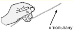 Рис. 1. Манипуляция левой рукой при проводке мокрой мушки В процессе перемещения мух по дуге левой рукой (а точнее, пальцами) незначительно, буквально на пару сантиметров, но часто подтягиваем и отпускаем шнур (рис. 1). Муха при этом «оживает» и «шевелит» мягкими ножками и крылышками, что, несомненно, провоцирует даже осторожную рыбу. Периодически можно на 1–3 с (рис. 2, I) останавливать движение удилища, шнур при этом продолжает перемещаться, и мухи по небольшой дуге начинают медленно подниматься к поверхности (рис. 2, II).
