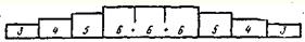 Рис. 4. Схема лески с указанием ниток в коленах Для изготовления крученой лески из белых бумажных ниток требуется катушка № 10. Леска получится с двумя спусками на концах, длиной 27 м, весом 20–25 г. Конец ее может выдержать 5 кг. Диаметр лески меняется скачками через каждые 3 м. Леска состоит из 9 колен, каждое длиной 3 м. Схема ее с указанием числа ниток в каждом колене показана на рис. 4. Для отмера длины колен в доску забивают два гвоздя на расстоянии 340 см один от другого. Третий гвоздь (без шляпки) забивают между ними в 20 см от левого. На конце нитки делают петлю и надевают ее на гвоздь со шляпкой. Размотав шпульку и натянув нитку, ее укрепляют на втором гвозде так же петлей. Конец нитки отрезают, затем берут кусок проволоки длиной 10–12 см и толщиной 2 мм и конец ее загибают крючком. Поддевают крючком нитку за петлю, снимают ее с гвоздя, и, слегка натянув, начинают скручивать, вращая вправо. Длина нитки от скручивания будет уменьшаться. Как только петля дойдет до третьего гвоздя, ее переносят с крючка на гвоздь. Скрученную нитку в натянутом состоянии оставляют на первом и третьем гвоздях. Для первого колена, таким образом, скручиваются три нитки. Затем крючком поддевают все три нитки и скручивают их в обратном направлении (влево), до тех пор пока процесс не прекратится сам собой. Скрученные колена будут немного длиннее 3 м, что и требуется. Расправив руками и потянув свитый конец, его снимают с гвоздя и убирают в сторону — первое колено готово. Остальные колена из 4 и 5 ниток изготовляют таким же образом. Колено из 6 ниток можно скручивать не по одной, а сразу по две нитки, а затем, подхватив крючком все три пары, скручивать их в обратную сторону, причем длину их можно отмерить сразу на все три колена — 9,8 м. После свивания каждой пары ниток длина их уменьшится на 60 см. Чтобы будущая леска приобрела необходимые качества, ее надо вытянуть. Заготовленные колена временно связывают простым узлом, к концам привязывают веревочки. Одну из них закрепляют на гвозде, другую перекидывают через блок (ролик от электропроводки) и подвешивают тяжелый груз (не более 5 кг). Натянутую леску все время смачивают мокрой тряпочкой, чтобы она пропиталась насквозь. Груз, растягивая леску, будет опускаться. Убедившись, что он перестал опускаться, смачивание лески прекращают и дают ей хорошо просохнуть. Операция смачивания и растяжения занимает около 15 мин. После такой обработки нитки плотно улягутся одна к другой и получат одинаковое натяжение. Прочность лески возрастет на 15–20 %- После снятия лески рыхлая веревочка обладает упругостью стали. Дальнейшая операция — пропитка лески специальным раствором для придания ей плавучести, веса и водонепроницаемости. Это надо делать осторожно, иначе можно испортить леску. Самая простая пропитка — в горячем растворе из 3 частей парафина, 3 частей воска и 1 части технического вазелина. Леску протягивают через раствор, излишек которого удаляют тряпочкой. Через 3–4 ловли обработку возобновляют, особенно той части лески, которая была в воде. Более прочную пропитку дают олифа, нитролаки и различные смолы, однако покрывать ими леску сразу нельзя, так как после просушки она делается ломкой. Перед покрытием необходимо чем-то забить поры волокон. Для этого употребляют смоляное мыло, которое в воде не растворяется. Приготовляют его так: на 200 г вод
