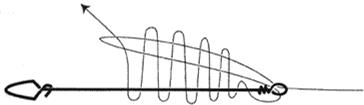 Рис. 1. Поводок из тонкой проволоки и узел для монолески Виброхвост ВишневскогоКаждая приманка, зарубежная или отечественная, рассчитана на какие-то определенные условия. Не секрет, что большинство американских моделей предназначено для ловли бэсса (большеротого окуня). Но ведь у нас-то его нет совсем! А то, что хорошо для одного, не всегда идеально подходит для другого. Вот почему хочется иметь чисто русские приманки, рассчитанные на наших щук, судаков и окуней, и максимально адаптированные к нашей ловле. Как раз такие образцы уже более 25 лет разрабатывает в Москве Георгий Евгеньевич Вишневский, человек огромного таланта, которого я считаю своим учителем. Приманки Вишневского широко известны в Москве и Подмосковье и пользуются всевозрастающей популярностью. А поскольку столичный регион испытывает сильнейший рыболовный прессинг, и рыба здесь самая “разборчивая” — это прямой показатель того, что в других местах приманки Вишневского дадут еще лучший результат. Особенно удачной и универсальной получилась модель виброхвоста (рис. 2). Виброхвост Вишневского имеет максимально натуральную форму, плоский ленточный хвост, обеспечивающий легкую стабильную игру, и сквозное отверстие для внутреннего монтажа оснастки. “Рыбки” производятся всех основных цветов, включая светящийся. Сменные грузила разного веса позволяют ловить в любых условиях. Разборная оснастка дает возможность легко производить замену грузов, “рыбок”, крючков. Можно поставить двойник, а потом поменять его на тройник, можно дополнительно поставить второй крючок в заводное колечко перед “рыбкой”. Более универсальную оснастку трудно себе даже представить. А виброхвост Вишневского создан как раз для такой оснастки.
