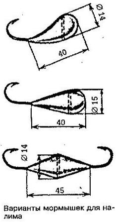 Изготовление «серебряных» мормышек в домашних условияхБерут 2 части чистого олова и 3 части мелких серебряных опилок. На деревянной поверхности горячим паяльником раскатывают олово по опилкам серебра до образования кашицеобразной массы. В кусочек определенной величины этой массы вводят крючок и паяльником придают мормышке необходимую форму. Отверстие для лески делают тонкой иглой, которую вводят в неостывшую массу (нужно уловить момент, когда игла не расколет хрупкую массу, а без усилий проткнет мормышку насквозь). Полученную заготовку сначала обрабатывают надфилем и мелкой наждачной шкуркой, а затем полируют. Мормышки, изготовленные из такого сплава, не тускнеют, по блеску не уступают мормышкам из чистого серебра. Этот же состав можно использовать для серебрения блесен. На зачищенную и смазанную паяльной кислотой поверхность блесны паяльником ровным слоем наносят подготовленную массу. После этого блесну зачищают и полируют до зеркального блеска. Мормышка из детской погремушкиРазноцветная пластмасса от старых детских погремушек — хороший материал для мормышек. Пластмассу растворяют ацетоном или дихлорэтаном до вязкого состояния. Отрывают кусочек по размеру будущей мормышки, вводят в него крючок и придают пластмассе необходимую форму. После этого иглой прокалывают отверстие, стараясь попасть в ушко крючка. После сушки мормышка готова. Пайка без перегреваПрипои в виде паяльных паст очень удобны при работе с мормышками, крючками, блеснами. Хорошая паяльная паста получится, если растереть опилки припоя в небольшом количестве глицерина. Когда нужно паять мелкие мормышки, крючки, которые боятся перегрева, а паяльник слишком велик для тонкой работы, нужно свернуть в спираль медную проволоку и надеть ее на жало. Конец проволоки должен быть заточен по той же форме, что и жало паяльника. Ловля на мормышку без насадкиВ последнее время любители-рыболовы проявляют большой интерес к зимней ловле на мормышку без насадки. Они ловят плотву, преимущественно крупную, на блестящую мормышку в форме дробинки или капельки с намотанной на цевье крючка черной шерстяной ниткой. Тонкую черную нитку наматывают на цевье крючка у его основания до образования небольшого шарика, по размеру немного меньшего, чем диаметр мормышки. Концы нитки завязывают двойным узлом и обрезают так, чтобы остались два торчащих вверх хвостика в 1—1,5 мм. Их следует распушить иглой. Удилище применяют обычное, зимнее, с тонким гибким кончиком и чувствительным кивком, леску сечением 0,1 мм. Более толстая леска при этом способе непригодна. Для увеличения чувствительности снасти рекомендуется ловить на две самые маленькие мормышки, привязав их к леске друг под другом через интервал 5 см. При таком их расположении поклевки чаще бывают на верхнюю мормышку. Техника ловли на такую снасть проста: очень медленный подъем мормышки со дна на 40—50 см с небольшим покачиванием концом удилища, остановка и медленное опускание с покачиванием. Временами следует пробовать более быстрый подъем с интенсивным покачиванием. Лучшая пора для ловли на мормышку с черной ниткой — перволедье и по последнему весеннему льду.