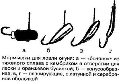 Начинающему рыболову надо усвоить некоторые правила, из которых если и бывают исключения, то довольно редко. Утром следует ловить на блестящую приманку. Когда солнце поднимется над землей и озарит все вокруг своим сиянием, необходимо переходить на более тусклую мормышку, особенно если ловля происходит на мелководье. На глубине и в солнечный день можно продолжать пользоваться блестящей приманкой. Это относится и к ловле в сумерки. На глубине 5— 6 м солнечный свет, пронизывающий толщу воды, будет более рассеянным, чем в 0,5—1 м от поверхности. Поэтому может оказаться уловистой мормышка с блестящей белой или желтой поверхностью, а на мели — тусклая. Новые мормышкиВсе кажется довольно просто: куплены новые мормышки, остается привязать их к поводкам — и зимняя приманка готова. Так то так, но замечено, что именно на новые мормышки рыба клюет неохотно, а то и вовсе отворачивается от них. Но и эта рыбья «странность» объяснима: ей не нравится запах горелого свинца. Поэтому новые, купленные в магазине мормышки надо перед ловлей хорошо промыть в горячей воде и почистить. Как устроена летняя удочка с мормышкойУдилище состоит из двух колен. Первое колено (комелевая часть) выстругано из сосновой рейки длиной 1,8 м, второе — из бамбука длиной 2,2 м с гибкой вершиной. Колена соединяются при помощи алюминиевой трубки. Такое удилище легко изготовить самому. Оно легкое, и рука при ловле не устает. На конце удилища закрепляется обыкновенный сторожок. Длина лески равна длине удилища, толщина — 0,15 мм. На конце лески привязывается свинцовая мормышка-дробинка. Мормышку закидывают на всю длину лески. Когда мормышка ляжет на дно, слегка подергивают удилищем кверху или параллельно берегу. Подсекают, как только сторожок даст сигнал о поклевке. Большей частью окунь клюет так, что поклевка ощущается рукой. Иногда приходится ловить с полводы и на разных уровнях ото дна. Утром лучше ловить на глубоких местах, днем и вечером — на отмелях, косах, вблизи ям. Большое преимущество ловли летней удочкой с мормышкой заключается и в том, что рыболов обходится без лодки. Мормышка вместо грузилаПри ловле на поплавочную удочку вместо грузила можно использовать свинцовую мормышку. В ней надо просверлить кроме вертикального отверстия для лески еще и горизонтальное для вывода лески к крючку. Леска через вертикальное отверстие привязывается к цевью крючка и затем пропускается через горизонтальное отверстие к крючку. От мормышки до крючка должно быть 3—4 см. Ночная ловля на мормышкуКороток зимний день, особенно если клев интенсивный. Многие рыболовы с огорчением собирают снасти и покидают «клевые» лунки. Темнота не позволяет насадить мотыля, невозможно разглядеть сторожок на кончике удилища. Однако на мормышку с успехом можно ловить и в темные ночи, если оснастить обычную зимнюю удочку электролампочками . Для этого в пенопластовую рукоятку удилища вставляют две миниатюрные батарейки, питающие две параллельно соединенные электрические лампочки. Одну из них припаивают на кончике сторожка, сделанного из гибкой пластинчатой пружины, и подсоединяют тонким проводом к батарейкам. Эта лампочка предназначена для освещения сторожка. При поклевках она колеблется вместе со сторожком или помогает рассмотреть ослабление лески, если рыба поднимет мормышку вверх. Вторую лампочку м