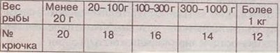 Размер рыболовных крючковКогда я впервые пришел в рыболовный спорт, то больше всего удивился размеру крючков, используемых спортсменами. До того времени самым маленьким крючком, которым я пользовался при ловле нормальной рыбы (более 100 граммов), был крючок № 3,5 по российской нумерации. А тут меня стали учить переделывать готовые крючки и делать из № 2,5 еще более мелкий. Зачем? Тогда я этого не понимал. Теперь же, по прошествии более чем десяти лет, крючком больше чем № 12 (уже по европейской нумерации), я не пользуюсь (крупнее — только в спиннинге или донке). Самый маленький крючок, который мне довелось применять, был № 26 (по нашей нумерации — около № 1,3–1,5). Использование отечественных крючков теперь я считаю совершенно невозможным. Хотя еще лет 7–8 назад я пользовался нашими крючками, но только одним видом. Это был единственный, приемлемый для «тонкой» ловли, крючок № 3,5, с загибом типа «кристалл», почти черного цвета. Потом на наш рынок стали попадать японские крючки, которые мы покупали за бешеные деньги у спортсменов из Прибалтики. А что было потом — вы знаете сами. Хотя до сих пор найти подходящий крючок не так-то просто. В большинстве литературы приводится таблица соответствия российской и международной нумерации крючков, и я не считаю необходимым приводить ее здесь. Жители крупных городов уже не воспринимают российскую нумерацию, но чем дальше от Москвы, тем меньше товара и литературы попадает к рыболову, и, несмотря на то, что рыболовы «глубинки» имеют большой опыт, многие из них еще используют российскую нумерацию (напомню, номер российского крючка — это расстояние в миллиметрах от жала до цевья). На любительской рыбалке я использую крючки от № 20 до № 12. Необходимость использования маленьких крючков объясняется тем же, чем и использование маленькой мормышки. Чем меньше крючок, тем легче рыбе его «взять» (заглотить). Я не спорю: если рыба активна, голодна, что наблюдается в преднерестовый ход, то можно использовать и крупный крючок. В этой ситуации рыбе практически без разницы, что хватать — лишь бы насадка была привлекательной. Другое дело летом, когда в воде полно еды, да еще и прикормки от рыболовов рыба наелась. Она начинает капризничать. И вот тут вступает в действие маленький крючок. Рыба его практически не ощущает. Поклевки становятся увереннее. Но на этом преимущества маленького крючка не заканчиваются. Может показаться парадоксальным, но в большинстве ситуаций маленький крючок имеет большую зацепистость, нежели большой. Большой крючок рыба не заглатывает сразу, а держит во рту. Если быть точным, то вы прерываете момент «оценки» рыбой приманки с крючком внутри (заглатывания или выплевывания) своей подсечкой. И крючок цепляется за губу. Маленький же крючок рыба заглатывает безбоязненно (по размерам он сравним с привычным для рыбы кормом), а, следовательно, быстро. После подсечки крючок втыкается в мясистое нёбо рыбы. Оттуда крючок даже экстрактором вытащить не так-то просто. Но с крючком-малюткой возникают и несколько проблем. Во-первых, крючок должен быть достаточно прочным, чтобы выдержать рыбу, так как нагрузка приходится не на поддев крючка (как при зацепе за губу), а, часто, на само жало. То есть крючок необходимо изготовить из прочной проволоки, но сама проволока при этом должна быть тонкой. Соотношение толщины пр