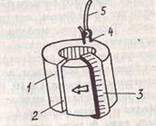 Рис. Отцеп: 1 — свинцовый цилиндр 100–300 г; 2 — разрез для лески; 3 — резинка, закрывающая разрез; 4 — скоба; 5 — леска отцепа 0,8–1 мм Какова техника блеснения? Если вы ловите на течении, то забрасывайте блесну выше лодки и стравливайте леску с катушки до тех пор, пока блесна не стукнется о дно. Вы почувствуете это рукой или увидите по провисанию лески. На достаточно сильном течении стравливайте еще 30–50 см лески, затем приподнимайте кончик удилища на 40–60 см и сразу же быстро опускайте его вниз, возвращая в исходное положение. При этом леска ослабевает, и блесна, не сдерживаемая ею, сначала уходит в сторону, переваливаясь с боку на бок, а затем, медленно колеблясь, вниз до тех пор, пока леска не натянется и не примет вертикального положения. Этот момент ясно ощущается рукой. Опустившись, блесна замирает не сразу, а продолжает еще некоторое время колебаться. Хватка хищника может последовать в любой момент, но чаще всего — при подъеме удилища. Щука берет резко, стремительно. Поклевка же судака зачастую напоминает в первый момент зацеп, тем более, что, охотясь на эту рыбу, стоишь, бывает, на закоряженном, захламленном месте, зацепы часты. Однажды, почувствовав вроде бы явный зацеп и лишившись до этого пары блесен, я положил удилище поперек лодки и, огорченный, хотел было закурить. Тут же удилище стало стремительно — еле успел перехватить — уходить в воду. После короткой борьбы (с судаком церемониться нечего) вытащил рыбину почти в три килограмма! Выждав, когда колебания блесны прекратятся, на что уходит примерно четыре секунды, подъем и опускание блесны повторяют. Эти движения полезно разнообразить, например, подняв удилище вверх, поддергивать его 2–3 раза короткими толчками. Именно короткий толчок часто побуждает хищника к броску. Возможны варианты движений, шаблона тут нет, но важно чувствовать рукой игру блесны. У судака, не то, что у щуки, «каменная» пасть, поэтому крючок должен быть остро отточенным, а подсечка — решительной и резкой. Ведь сколько раз случалось так, что уже поднял хищника на поверхность воды, подводишь подсачек, а он разжал пасть, блесна выскользнула и… Разумеется, блесну будет относить течением от лодки все дальше, поэтому нужно вести удилище вслед за блесной (здесь оказывается полезной его длина) до тех пор, пока игра ее уже не будет чувствоваться. В зависимости от силы течения и тяжести блесны отпуск ее от лодки может достигать 5-10 метров. Естественно, блесну приходится довольно часто перебрасывать. На сильном течении применяют короткий жесткий удильник, на конце лески — довольно тяжелый (50-100 г) свинцовый груз, а в уровень с ним на поводке та же зимняя блесна. Значительно проще блеснить в тиховодье. Приемы сходны. Но если на течении блесна «скачет», ударяясь время от времени о дно и все дальше удаляясь от лодки, то здесь, стравливая леску, ждут, пока она не достигнет дна. Затем, регулируя длину отпущенной лески так, чтобы блесна находилась в 10–15 см от дна, а кончик удилища в 20–25 см от поверхности воды, начинают собственно блеснение. Здесь тоже сказывается преимущество длинного удилища: вы можете постепенно вести его вдоль лодки, захватывая большее, чем при коротком удилище, пространство. Да и хищник, особенно судак, как бы нахален он ни был, не всегда будет держаться у самой лодки, особенно на небольшой глубине. А мне приходил