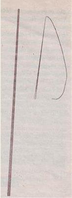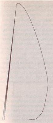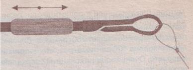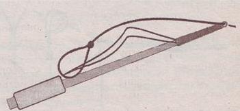 Рис. 9. Самодельная застежка. Петелька из лески продевается в колечко и заправляется под проволоку, после чего на проволоку надвигается отрезок изоляции («кембрик») Поломка удилища и его ремонтОтчего же ломаются удилища? Тут возможны только два варианта: брак производителя или неаккуратное обращение с ним рыболова: наступил, уронил, неправильно собрал. И если с первой причиной мы ничего не можем поделать (оставим это на совести производителей), то во втором случае все зависит только от нас. Итак, что надо делать и чего не надо, чтобы удилище прослужило вам максимально долго. Чего делать нельзя?• При переходе с одного места ловли на другое, удилище не следует нести кончиком вперед. Оно всегда переносится вперед комлем. В противном случае вы рискуете ткнуть кончиком в землю и сломать его. • Внимательно следите за забросом. Помните, что чаще всего неудачи со снастями случаются при чрезмерной усталости рыболова. Так, часто мы слишком сильно сжимаем удилище рукой при запросе, что приводит к деформации (вместо круглого удилище получается в сечении овальным и хуже держит нагрузку) и поломке (рис. 10). • Не следует перегружать удилище чрезмерным весом приманки. Так, например, ни в коем случае нельзя кидать поплавок грузоподъемностью 20 граммов «английским» удилищем «ultra light» (суперлегкий класс удилищ — среди поплавочных снастей к нему относятся почти все, кроме карповых удилищ и удилищ для ловли хищника на живца).