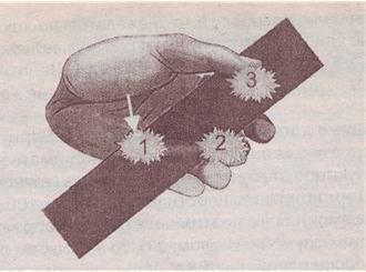 Рис. 10. Силовое воздействие на удилище руки, сжимающей его в момент заброса. Все эти силы не должны в сумме изменять круглое сечение удилища, дабы не привести к его поломке: Если вам все же необходимо немного превысить эту нагрузку (чего следует всячески избегать), то старайтесь выполнить затяжной заброс, плавный, с большой амплитудой замаха и минимальной начальной скоростью снасти. • Не пытайтесь применять силу при разъединении застрявших колен. Не надо привлекать к процессу и товарищей, занимающихся бодибилдингом. На этот случай просто имейте с собой два кусочка (5-10 сантиметров длины) тонкой резины, как на хозяйственных перчатках. За счет увеличения сцепления с материалом удилища и с вашими руками, колена не будут проскальзывать у вас в руках, и вы легко их разъедините. Если же привлечь на помощь толпу здоровых мужиков, то вы рискуете остаться со скрученным в веревку удилищем. • При вываживании, особенно в конечной его стадии, старайтесь не заводить вершинку удилища за вертикальную линию, проходящую через его комель. Так вы создаете слишком большое напряжение в вершинке, что нежелательно, так как любое удилище рассчитано на работу всей длиной. • Не поднимайте большую или среднюю рыбу над водой на леске, не выкидывайте ее на берег. Удилище для этого не предназначено — оно необходимо для вываживания и заброса! Берите рыбу подсачеком или рукой в воде. Поднимать над водой можно рыбу менее 400 граммов (точнее, в зависимости от мощности удилища — от 100 до 400 граммов). Если вы этим советом пренебрежете, то может случиться поломка либо на хлысте, либо на втором колене. Такой вариант поломки характерен для маховых и телескопических удилищ с кольцами. Штекерные же удилища с кольцами имеют более мощную вершинку и менее подвержены такому виду поломки. • Ну и основное, из-за чего происходит большинство поломок, — момент отцепа приманки при «мертвом» зацепе. Если вы почувствовали, что приманка засела «конкретно» (коряга, камень, большой пук водорослей), то не надо поднимать удилище вертикально и дергать «со всей дури». Короткими толчками удилища (угол между удилищем и водой не более 45 градусов) попытайтесь освободить приманку. Далее просто поставьте удилище параллельно воде (то есть, не задействовав его упругие свойства), потяните на себя до освобождения приманки или обрыва лесы. Что делать необходимо?• Всегда полностью разбирайте удилище при перевозке в машине, катере. • Смазывайте места соединения колен (для «английской» удочки) специальной смазкой (это препятствует заклиниванию и самопроизвольному разъединению колен). • Храните удилище в вертикальном положении. • Храните его в чистоте, промыв обычной водой, протерев мягкой тряпочкой и высушив. • И главное. Помните, что лишь не более 1 % удилищ, чья цена больше 50 у.е., ломаются из-за производственного брака. Основная масса поломок — ваша неаккуратность. • Особенно осторожны будьте при ловле штекерным удилищем на больших глубинах. Поскольку «штекер» не рассчитан на маховый заброс, то при глубине более 4–5 метров (длина «концевика» более 5 метров) старайтесь делать заброс очень плавным или делайте заброс не через голову, а от себя снизу, то есть вы просто наклоняете удилище параллельно воде, оснастку держите в руке, и, отпуская оснастку, одновременно поднимаете удилище до угла примерно в 45 