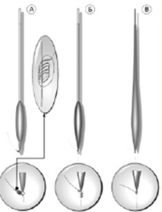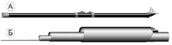 Рис. 1. Удилища для бегучей (А) и глухой (Б) оснасток Разобравшись с ценой и материалом, из которого изготовлено удилище, и его конструкцией (типами соединения), надо решить, как вы будете его оснащать, при этом надлежит исходить из того, что, где и как вы собираетесь ловить. В первую очередь принимается во внимание наличие или, наоборот, отсутствие проводочных колец. При наличии колец удочка оборудуется бегучей оснасткой (к слову, таких удилищ в продаже большинство) и позволяет производить ловлю на значительном расстоянии от рыболова (рис. 1). Обычно она оснащена катушкодержателем. Удилище без колец предназначено для ловли с глухой оснасткой. Эти удочки применяются на соревнованиях по спортивной ловле рыбы, отдается предпочтение оперативности манипулирования снастью. Не менее важной характеристикой поплавочных удилищ является мощность удилища. Если нахлыстовые удилища четко различаются по классам AFTMA, а спиннинговые – по весовому тесту, то для удилищ, используемых в поплавочной ловле, общей градации не существует. Тем не менее, хоть и условно, но все же различают три основных типа: уклеечные, стандартные и карповые удилища. Уклеечные удилищаОни достаточно легкие и тонкие с утолщенной до 3 см в диаметре ручкой. Тип соединения у них может быть как телескопический, так и составной. Эти удилища удобны в обращении с легкой оснасткой, а сам термин «уклеечное удилище» подразумевает ловлю мелкой рыбешки. На самом деле эти удочки подходят для ловли любой не очень крупной рыбы. Стандартные удилищаЭто те удилища, которые наиболее распространены как среди рыболовов, так и на прилавках рыболовных магазинов. По сравнению с уклеечными они более мощные. В длину они могут достигать 12 м. Несмотря на наличие у таких удилищ довольно тонкого кончика (0,6–1,0 мм в диаметре), они позволяют справиться с рыбой весом до 5–7 кг, да и весовой диапазон в отношении забрасываемой оснастки значительно широк. Карповые удилищаДля поплавочной ловли (и не только) это наиболее мощные и тяжелые удилища. При ловле их кладут на специальные подставки. В длину они могут быть от 7 до 14 м. Длина удилища, как одна из его важнейших характеристик, подбирается исходя из условий ловли. Например, именно длина удилища определяет расстояние, на котором возможна ловля с глухой оснасткой. А при ловле снастью с бегучей оснасткой именно длина удилища, не играющая большой роли для дальности заброса, определит возможность корректной проводки при ловле на течении, что, несомненно, отразится на конечном результате рыбалки. Но здесь следует учитывать индивидуальные возможности рыболова, так как слишком длинное, а значит, и более тяжелое удилище быстрее утомляет. В этом смысле удилища из графита выгодно отличаются от стеклопластиковых. Кроме того, удилища для поплавочной ловли подразделяют на маховые и штекеры. Эта терминология имеет непосредственное отношение к тем манипуляциям, к которым приходится прибегать при ловле. Разделение удилищ на два таких типа произошло в связи с появлением длинных штекерных удилищ и ловлей на них при укороченной оснастке. Иначе говоря, к маховым удилищам относятся те, оснастку которых забрасывают взмахом удилища. По типу соединения они могут быть и телескопическими, и составными (штекерными). Такие удилища имеют длину от 1 до 14 м. У длинных удочек комлевые (са