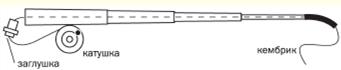 Современные углепластиковые маховые удилища изготавливаются, как правило, в телескопическом варианте. Помимо того, что они требуют к себе бережного отношения, не менее важным является вопрос надежного крепления оснастки к такому удилищу. Надо сказать, что выбор того или иного способа крепления прежде всего зависит от конструкции верхнего колена: цельного, комбинированного или пустотелого. В первом случае лучше всего для крепления оснастки использовать застежку из сталистой проволоки. Такое соединение удилища с основной леской достаточно надежно и позволяет довольно быстро заменять оснастки, которые хранятся в готовом виде на отдельных мотовильцах. Недостаток подобного крепления в том, что большая часть нагрузки при подсечке и вываживании рыбы приходится на верхнее колено. Кроме того, нередко возникает необходимость быстро укоротить отпуск лески, чтобы добраться до рыбы под нависшим над водой кустом или втиснуть приманку в прогалину между щетиной камыша или торчащих из воды веток. С глухим креплением оснастки это сделать невозможно. Во втором случае (с пустотелой вершинкой) указанных недостатков можно избежать, если правильно оснастить удилище путем пропускания лески от проводочной катушки или с мотовильца внутрь бланка удочки. Как это сделать, показано на рисунке 1 . На самом толстом комлевом колене «телескопа» в средней его части при помощи изоляционной ленты крепим катушку или мотовильце из двух нержавеющих канцелярских скрепок для сматывания и наматывания снасти. Далее открываем резиновую заглушку на комлевом колене и вынимаем верхнее колено. Если оно имеет металлическое или пластиковое кольцо для крепления лески, срезаем его, обрабатываем края среза надфилем, тщательно шлифуем и надеваем на кончик с усилием кембрик (3—4 см), который будет предохранять леску от перегибов и излишнего трения о стенки колена. Затем продеваем основную леску через кембрик и вершинку, которую вставляем в удочку, – леска продета через все колена.