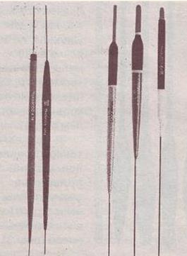 Рис. 1. «Гусинка» — прообраз современной «иглы» Поплавок с такой формой тела отлично реагирует как на поклевку «на потоп», так и «на подъем», так как лобовое сопротивление его минимально. Характеристика поплавкаЧувствительностьПрежде чем говорить о чувствительности поплавков, разберемся, какие бывают виды поклевки. Для этого разделим все поклевки на два типа: «на потоп» — когда поплавок идет вниз, и «на подъем» — когда поплавок вылезает из воды. В первом случае (при поклевке «на потоп») чувствительность зависит от лобового сопротивления поплавка или, что одно и то же, от его обтекаемости. На рисунке (рис. 2) поплавки расположены в порядке уменьшения чувствительности. То есть, если мы возьмем два поплавка с одинаковым объемом (грузоподъемностью), то большей чувствительностью будет обладать поплавок с меньшими и углом а, и расстоянием В (рис. 3).