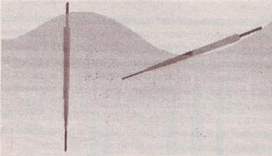 Рис. 7. Поведение поплавка с узкой верхней частью на большой волне Так же отвратительно ведет себя на ветру «игла». Этот поплавок вообще не переносит никаких внешних воздействий. Даже проводку трудно осуществить с таким поплавком. На волне «игла» ведет себя примерно так, как показано на схеме (рис. 8). Заметить поклевку в этой ситуации практически невозможно.