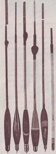 Поплавок является третьим по важности компонентом «глухой» снасти, после самого удилища и лесы. Основными характеристиками поплавка являются его грузоподъемность и чувствительность. Современный поплавок состоит из четырех составляющих элементов: тело, киль, антенна и лесопропускное колечко. Ниже мы поговорим об изготовлении поплавков, их формах и, следовательно, о чувствительности. Краткий обзор современных поплавковМатериалы для изготовленияТело поплавка изготавливается из самых легких материалов подходящей прочности. Самыми распространенными материалами являются бальза и пенопласт. Менее распространенным, но не менее хорошим материалом, является пенополиуретан (или проще — «пенка»). Этот материал придает поплавку дополнительную прочность за счет минимальной остаточной деформации. Наступив на поплавок из «пенки» ногой, вы легко сможете продолжать его использовать. Существуют две проблемы с пенополиуретаном: он очень трудоемок в обработке и требует специальной (эластичной, пропитывающей) покраски. Краска для этого материала является весьма токсичной и, следовательно, при покрытии ею требуется отдельное открытое помещение и соблюдение особых мер безопасности. Пенопласт намного легче поддается обработке, но имеет достаточно большую пористость, что либо сказывается на внешнем виде конечной продукции, либо требует дополнительной стадии в обработке — шпаклевки пор. Пенопласт восприимчив к краскам и лакам на нитрооснове, поэтому, прежде чем начинать изготовление поплавка, требуется протестировать краски и лаки на образцах материала. Бальза (бальса) — это южно-американское дерево очень малой плотности (в отличие от пробки), имеющее длинноволоконную (древесную) структуру. Бальза — самый легкий из перечисленных в обработке материал, и хотя имеет одну из самых приемлемых для изготовления чуткого поплавка плотностей, но весьма дорог. Купить бальзу для «кустарного» производства поплавков можно в кружках авиамоделистов. За границей заготовки для поплавков из бальзы можно встретить в специализированных рыболовных магазинах. Форма тела поплавкаОт формы тела поплавка зависят его чувствительность и устойчивость. Максимальную чувствительность обеспечивает форма тела в виде «иглы». Прообразом этой формы является устаревшая по всем параметрам «гусинка» (рис. 1).