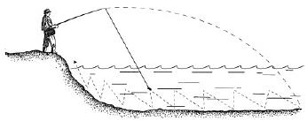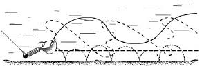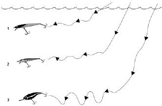 проводки: горизонтальная (в верхних слоях воды, на глубинах 0,5–1 м), прерывистая (в толще
