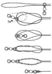 Рис. 14. Присоединение плетеной лески к вертлюжку или приманке безузловым способом