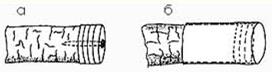 Рис. 1. Регулируемые противовесы-балансиры: а) металлические шайбы, фиксируемые болтом или шурупом; б) жетоны (монеты) под пластмассовым колпачком Проще всего это позволяет осуществить конструкция противовеса, показанная на рис. 1а. К комелю удилища приворачиваются с помощью болта или шурупа несколько увесистых металлических шайб. При поиске оптимального баланса вы можете задействовать любое их количество. Другой тип регулируемого противовеса, выпускаемый одной из американских фирм, представляет собой насадку из эластичного пластика или резины (типа внешней пробки от некоторых винных бутылок), в которую закладывается нужное количество металлических жетонов — можно использовать даже старые монеты (рис. 1б). При желании вы легко можете оборудовать свое удилище балансиром одного из этих двух типов. Подводя итог, следует сказать, что балансировка в гораздо большей мере требуется тем спиннингам, у которых недостаточно чувствительный бланк. После доводки такого удилища вам станет легче отслеживать проводку и поклевку, но достичь за счет этого чувствительности «правильных» бланков не удастся. Что еще иногда полезно бывает сделать своими силами, так это поменять катушкодержатель. «Французский» вариант (два кольца на пробковой рукоятке) хорош для тонкой ловли на мертвую рыбку или в сверхлегком классе. Любой другой вид джиговой ловли предполагает более надежную фиксацию катушки, поэтому «французский» держатель лучше заменить на более привычный — с фиксирующей гайкой. Возвращаясь к разговору о пропускных кольцах, заметим, что в джиг-спиннинге они очень часто становятся предметом дискуссий. И все по той причине, что в джиговой ловле используется большей частью плетеная леска, которая, как принято думать, обладает высочайшей абразивностью, то есть способностью истирать все и вся — и пропускные кольца в первую очередь. На самом деле плетенка не намного опаснее в этом отношении обычной монофильной лески, но при прочих равных условиях она пропилит слабенькие колечки однозначно быстрее. Я хочу тем самым сказать, что кольцам надо уделять внимание независимо от типа используемой лески, но речь же опять идет больше не о замене колец на потовом уже удилище, а о проверке при их выборе. В первом приближении проверить качество колец можно при помощи обычного (не алмазного, а "серого") надфиля. Если кольца им царапаются, они пропилятся любой леской, а плетенкой — очень быстро. Те пропускные кольца, что не по зубам надфилю, нас устроят. Лучше, конечно, если они будут из карбида кремния (SiC), но и простой оксид алюминия (а тем более хардлой) вполне допускает применение плетеной лески. Единственное, о чем хотелось бы предупредить, так это то, что самим названием «хардлой» (под которым понимают материал на основе того же оксида алюминия с «облагораживающими» добавками) иногда спекулируют. Это, по-видимому, связано с отсутствием единого жесткого стандарта на хардлой. Даже по цвету — если, например, SiC легко узнаваем по холодно-синеватому оттенку, то оттенок хардлоя может варьировать в широких пределах — от среднее-серого до темно-коричневого. Нельзя сказать что-либо определенное о твердости материала колец, который вам представляют как «хардлой», руководствуясь одним только его цветом, — остается прибегнуть к «услугам» надфиля. Если продавец сп