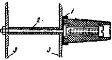 Рис 19. Деталь крепления ручки: 1 — стаканчик, 2 — распорная трубка, 3 — щечки Ножка катушки — возле лапок должна быть без острых углов и плотно, без зазора, прилегать к борту корпуса. Лапки — в меру широкие, длиной не более 80 мм, с поперечным выгибом (ложбинкой) по диаметру рукоятки удилища (радиус 12–13 мм) и по толщине и ширине спиленные к концам на конус. Расстояние от корпуса (крышки) до лапок — порядка 8 — 10 мм. Большинство инерционных катушек имеет нерегулируемый тормоз-трещотку, который включают при переносе снасти и вываживании крупной рыбы. Глухой регулируемый тормоз применяют реже. Чтобы избежать запутывания лески во время заброса, иногда делают различные приспособления, подтормаживающие барабан, которые либо заранее регулируют от руки, либо они действуют автоматически. Но эти устройства имеют недостаток — они снижают дальность заброса.