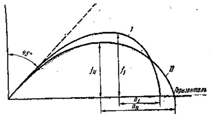 Рис 9. Кривые изгиба удилища: 1 — более комелистого, 11 — менее комелистого В местах наиболее сильного перегиба удилище испытывает наибольшее напряжение волокон. У комелистого удилища такое место будет ближе к концу, а у прогонистого — ближе к середине. Резкие перегибы указывают на ослабленные места удилища. У разъемных удилищ такие места наблюдаются недалеко от стыка, если переход диаметров от верхнего колена к нижнему составляет около 1,5 мм. Перехода сечений на стыке избегают (применяют фасонные соединительные трубки). Это улучшает строй и надежность удилища. Если у удилища сильно изогнута вершина, а средняя и комелевая части почти не гнутся, это означает, что верхний конец перегружен; он быстро изнашивается и ломается.