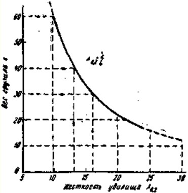 Рис. 4. График определения веса грузила при метании с инерционной катушкой в зависимости от жесткости удилища Знание жесткости позволяет подобрать наилучший вес грузила для метания. Известно, что чем жёстче удилище, тем более тяжелое грузило оно способно метать, если, конечно, оно упруго и не имеет остаточной деформации. На рис. 4 дана кривая, позволяющая по шкале жесткости (Шкала построена на основании многолетней практики при метании грузил на стадионах различными удилищами, с применением инерционных катушек. Кривая не претендует на абсолютную точность, но очень близка к истине) определять вес грузила, которое можно метать удилищем без его перегрузки на более далекие расстояния. Из графика видно, что для удилищ жесткостью 9 — 10, 13–14, 16–18, 22–25 лучшими грузилами для метания соответственно будут 60, 40, 30 и 20 г. Строй удилищаУдилище с хорошим строем позволяет делать далекие забросы приманки, надежно подсекать рыбу, быстро ее утомлять при вываживании и предохраняет леску от обрыва. Ни один из естественных хлыстов не может полностью удовлетворить требованиям, предъявляемым к хорошему строю удилища, поэтому их делают клееными из толстостенного бамбука или из стеклопластика и других упругих материалов. Рациональное распределение материала по длине удилища обеспечивает его хороший строй. Под строем понимается различное сочетание длин и сечений отдельных — участков удилища, определяющих его форму в целом. Каждая часть удилища имеет свое назначение. Вершинка играет главную роль при подсечке; она должна быть достаточно упругой, жесткой, но легкой, быть ни слишком тонкой, ни слишком толстой (тонкая не даст хорошей подсечки, толстая будет обрывать леску) и иметь мягкий, плавный переход к леске. Средняя часть — основной рычаг-пружина. Его назначение — метание грузила и защита лески от обрыва во время вываживания рыбы. Нижняя, комелевая, часть выполняет роль пружины вываживания, являясь как бы буфером средней части. Это самая мощная и прочная, часть удилища. При вываживании крупной рыбы следует пользоваться только этой частью, перенося на нее всю нагрузку. Рукоятка — нижняя утолщенная часть удилища, несущая на себе все удилище, служащая для управления им. Она должна быть — прочной, но в то же время гнущейся и составлять одно целое с удилищем, плавно переходить в комелевую часть. Деревянные негнущиеся рукоятки тяжелы и грубы, поэтому мы их не рекомендуем. Большинство удилищ имеет конусную форму (рис. 5, а). Степень конусности хлыстов характеризуется сгоном (сбегом), представляющим собой разность диаметров на единицу длины. Хлыст длиной 4 м с диаметром комеля 23 и вершины 3 мм имеет сгон (23 — 3): 4=5 мм на один метр или 0,5 мм на 10 см длины, Для удилищ применяются хлысты со сгоном от 3 до 5 мм.