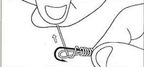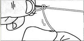 Рис.4. Смочите узел слюной и, придерживая рабочий конец одной рукой, потяните леску за другой конец.