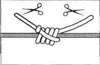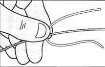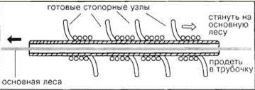 6. Кстати, если взять отрезок пластиковой трубочки («соломинка» для коктейля или что-либо подобное) длиной 7-10 см, навязать на ней дома несколько стопорных узлов рассмотренного типа (лучше - из шерстяных ниток), то на рыбалке вы уже не будете тратить время на вязку стопоров. (А.А. Окуневский) | |