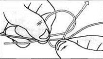 1.Возьмите отрезок монофильной лески длиной 25-30 см и диаметром таким же или чуть большим, что и у основной лески. Сложите отрезок вдвое, подложите под основную леску и прижмите пальцами.