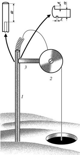 Рис. 4. Подледный лесораспускатель из винипласта В дополнение к такой жерлице неплохо иметь при себе специальное устройство для проверки снасти. Оно представляет собой телескопическую рукоятку, длина которой превышает толщину льда. На нижнем ее конце закреплен проволочный крюк, легко опускающийся и поднимающийся с помощью шнура. Для проверки живца приспособление опускают в рядом просверленную лунку. Этим приспособлением удобно доставать леску, чтобы подсечь и вывести хищника. Пока лед тонкий, можно пользоваться просто отрезком толстой проволоки, изогнутой соответствующим образом. Жерлицы с подледным лесораспускателем обычно применяют при ловле налима. Такая снасть удобна для ночной ловли, особенно в морозную погоду. В оттепель же, когда лунка не замерзает, не стоит лишать себя самых захватывающих моментов: зрелища «горящего» флажка, своевременной подсечки и аккуратного вываживания хищника. Как своими руками сделать жерлицуЖерлицы, любая их модель, – довольно дешевые снасти. Однако для начала я бы посоветовал не приобретать эту снасть, за редким исключением, в рыболовных магазинах, чтобы сразу же в ней не разочароваться. У любого рыболова-зимника в домашнем хозяйстве найдутся подручные материалы, из которых можно легко изготовить десяток зимних жерлиц, но и самодельная снасть должна отвечать таким требованиям, как простота конструкции, быстрота сборки и разборки, удобство в пользовании, компактность в собранном виде. Конструкций жерлиц много и все же ни одну из них нельзя назвать универсальной. Дело в том, что при ловле со льда приходится постоянно сталкиваться с нестандартными ситуациями. Приведу хотя бы такой пример. Вы приехали на водоем в оттепель, выставили жерлицы, зарядили их живцами, но днем клева не было. Вы решили оставить снасти до утра на льду, а ночью ударил мороз – леска вмерзла в лед, да и стояки жерлиц прихватило намертво. Хорошо, если есть пешня, тогда можно аккуратно сколоть лед и освободить снасти из ледового плена. Но на трофей, как правило, рассчитывать уже не приходится. Чаще всего хищник в этом случае мнет и бросает живца. А вот если бы вы заменили катушки на подледный лесораспускатель, эффект был бы прямо противоположным. И таких «если» великое множество. Наиболее простая и легкая в изготовлении жерлица, с которой, собственно говоря, я начинал осваивать в свое время ловлю щук на живца со льда, выглядит следующим образом. Стойка представляет собой легкий дюралюминиевый уголок с ребром шириной 10–15 мм и длиной 35–37 см. В верхней части ее с помощью капроновой нити и водостойкого клея крепят кусочек пробки с отверстием для свободного продвижения стальной полоски с флажком на конце. Катушку вытачивают из твердого мелкопористого пенопласта. Диаметр ее обычно 60–70 мм. Хорошая катушка на фторопластовой втулке менее всего подвержена примерзанию к оси при попадании влаги и должна иметь определенную инерцию торможения, что позволяет предотвращать перехлестывание лески во время щучьей хватки. Той же цели служит отсутствие осевого люфта у катушки и не слишком упругий фиксатор, срабатывающий при усилии примерно 0,15 кгс. На катушку, в зависимости от глубины ловли, наматывают 15–20 м прочной, тщательно проверенной лески. Когда вы сверлите или рубите лунку, очищайте место вокруг нее от крошек льда. Это уменьшит 